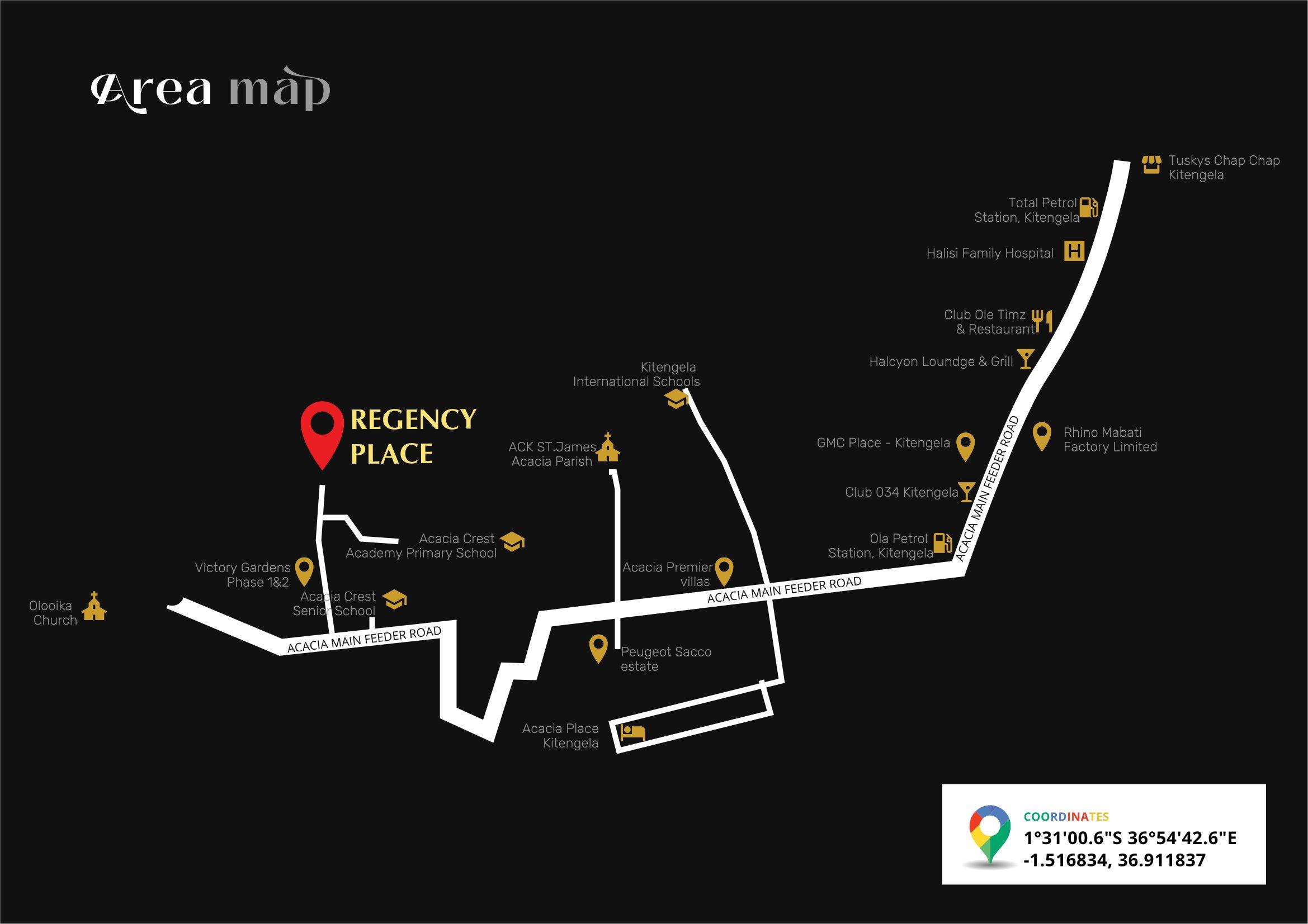 This prime property is located only 30 min drive from kitengela town and just 2 km from acacia main feeder road. This is a planned fully gated community with controlled residential houses. The development features 58 (1/8) acre serviced plots available for sale ready with modern architectural designs.